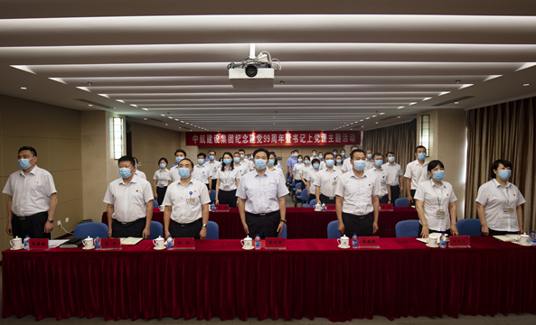 上午8时08分,主题活动以“迎七一,升国旗”仪式拉开序幕。仪式结束后,以集团多功能厅为主会场,视频会议室为分会场,各二级单位、项目部及京外单位通过网络会议系统同步收看参加了主题党课活动。
