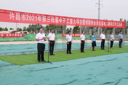 7月10日上午,河南省许昌市2021年第三批集中开工重大项目暨创新创业示范基地二期项目开工仪式顺利举行。许昌市委常委、纪委书记、监委主任方婷,魏都区委书记李朝锋,区人大常委会主任申健民,区政协主席杜晓辉,区委常委、区委办主任程中山,区委常委、区纪委书记、区监委主任徐光,魏都产业集聚区管委会主任楚文选,开云电子入口_开云(中国)河南分公司总经理黄辰,魏都区政府相关部门、投资公司、产业集聚区、霸陵办事处等单位负责人参加活动。区委常委、常务副区长张挪威主持仪式。